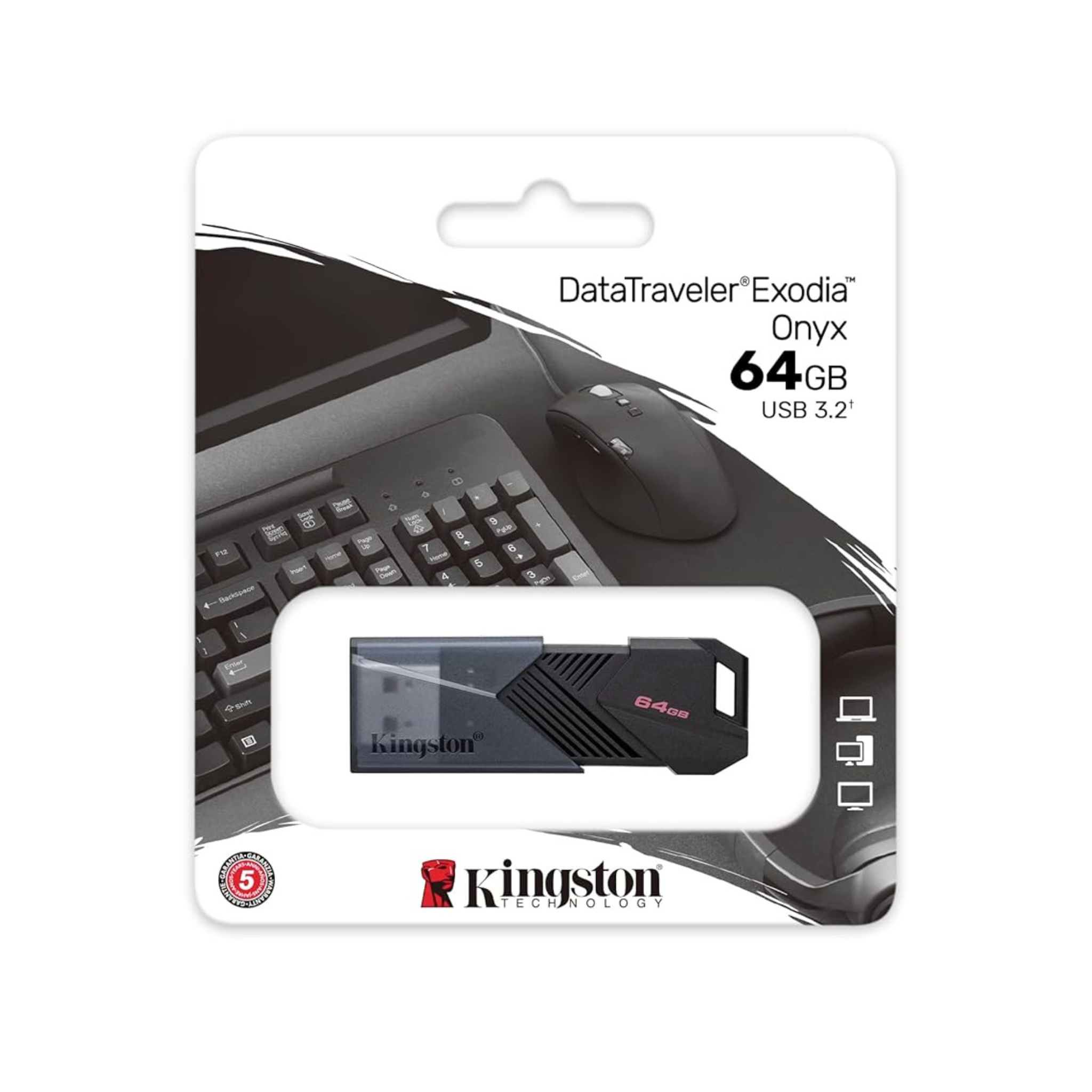 тЬЕ Kingston DataTraveler Exodia Onyx 64GB USB-A Flash Drive combines fast USB 3.2 Gen 1 performance with a sleek, durable Onyx design, ideal for portable file storage and transfers.