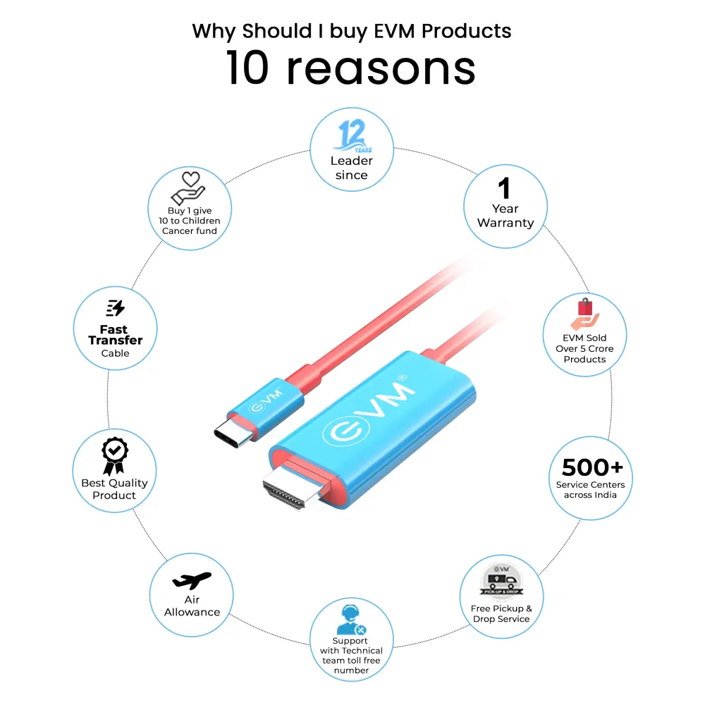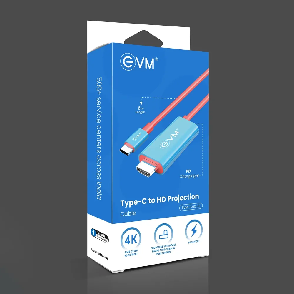The EVM Type-C to HDMI Cable 2M (Model: EVM-CHD-01) is a premium cable designed to connect Type-C devices to HDMI-enabled displays with ease. Supporting resolutions up to 4K UHD at 60Hz, it delivers crisp visuals and high-quality audio for laptops, smartphones, tablets, and other Type-C devices. The 2-meter length provides flexibility in setup, ideal for home entertainment, office presentations, and professional multimedia applications. Its durable construction ensures stable and reliable signal transmission, minimizing interference and signal loss. Offered by EVM, a trusted name in electronics and accessories across India, this Type-C to HDMI cable combines performance, reliability, and convenience for seamless high-definition connectivity.