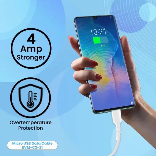 ✅ The EVM-C2-21-W Micro USB cable offers reliable fast charging and high-speed data transfer. Its tangle-free and durable design ensures long-lasting use with Android devices, power banks, and mobile accessories.