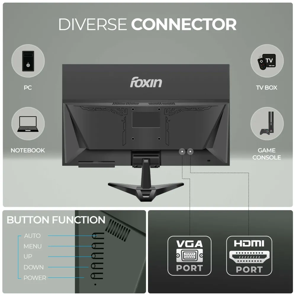 The Foxin 19.5 Inch LED Monitor (FM1950) offers clear Full HD visuals with sharp details and vibrant colors, making it ideal for home, office, and professional use. Featuring HDMI and VGA connectivity, it allows seamless connection with laptops, desktops, and other multimedia devices. Its compact design with slim bezels ensures a modern and space-saving setup, while energy-efficient LED technology provides reliable performance with reduced power consumption. Offered by Foxin, a trusted brand in electronics and computer peripherals, the FM1950 LED Monitor delivers excellent display quality, durability, and value for everyday computing needs.