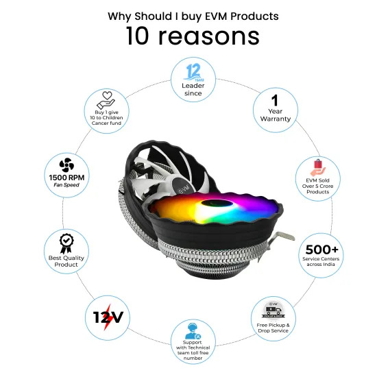 ✅ EVM EnAero 2.0 CPU Cooling Fan (ECF-504) is a high-performance air cooler designed to keep your CPU temperature optimal. It features quiet operation, strong airflow, and easy installation, making it ideal for gaming PCs, workstations, and general desktop use.