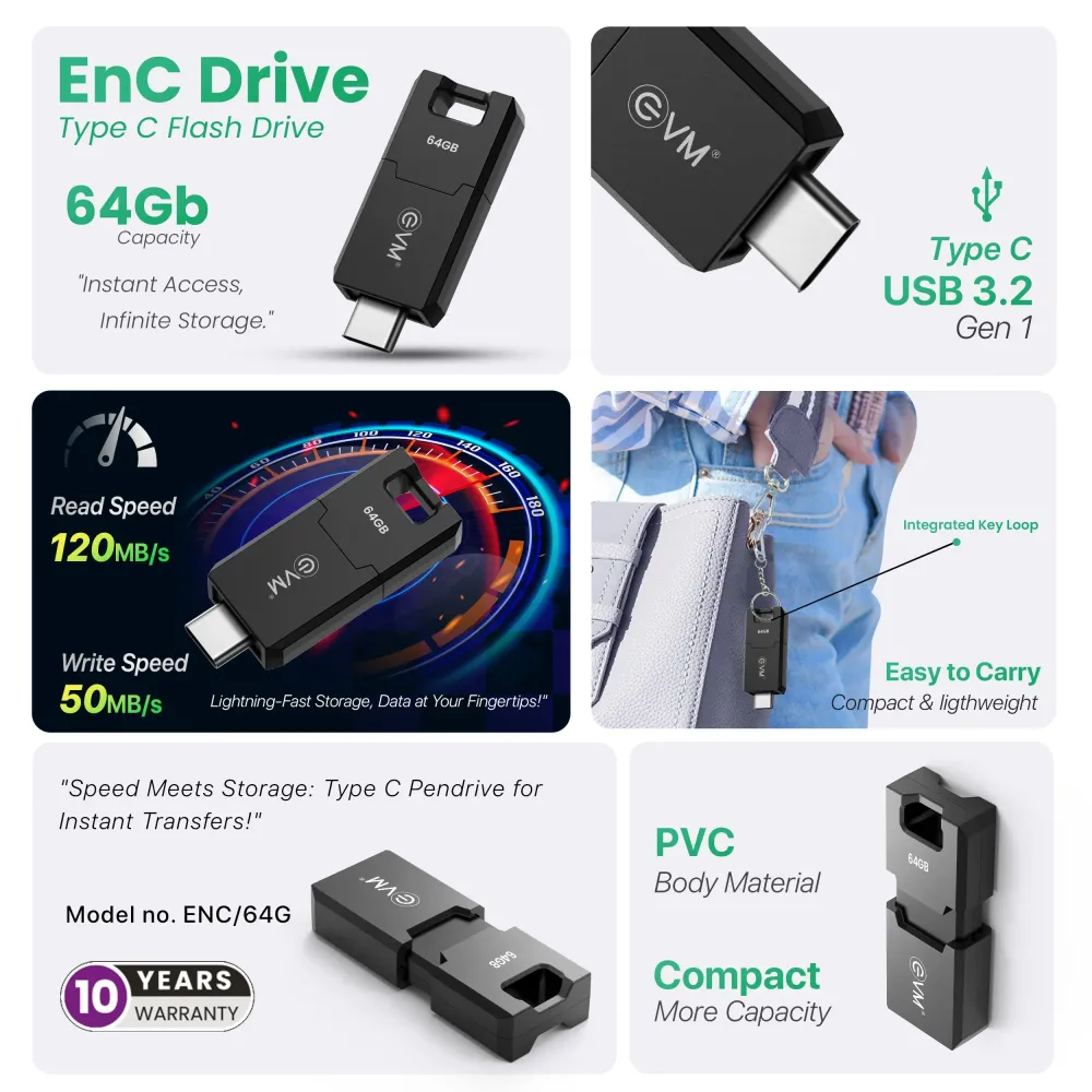 💾 EVM Enc Pendrive Type-C 64GB USB 3.2 Specifications