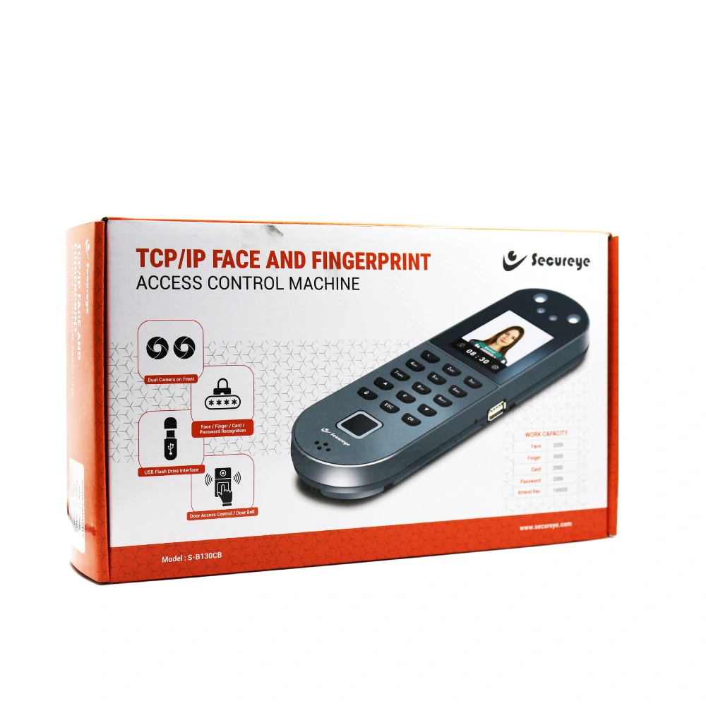 Secureye Access Control with Fingerprint | Face TCP/IP (S-B130CB) is a high-performance biometric access control and attendance system designed for advanced security environments. It combines fingerprint and facial recognition technologies for accurate and fast authentication. Equipped with TCP/IP connectivity, it allows seamless data transfer and remote management. Ideal for offices, institutions, and industries, this device ensures secure entry, efficient attendance tracking, and reliable operation. Available at Golchha Computer, this Secureye model offers excellent performance, modern design, and trusted biometric accuracy for Indian businesses.