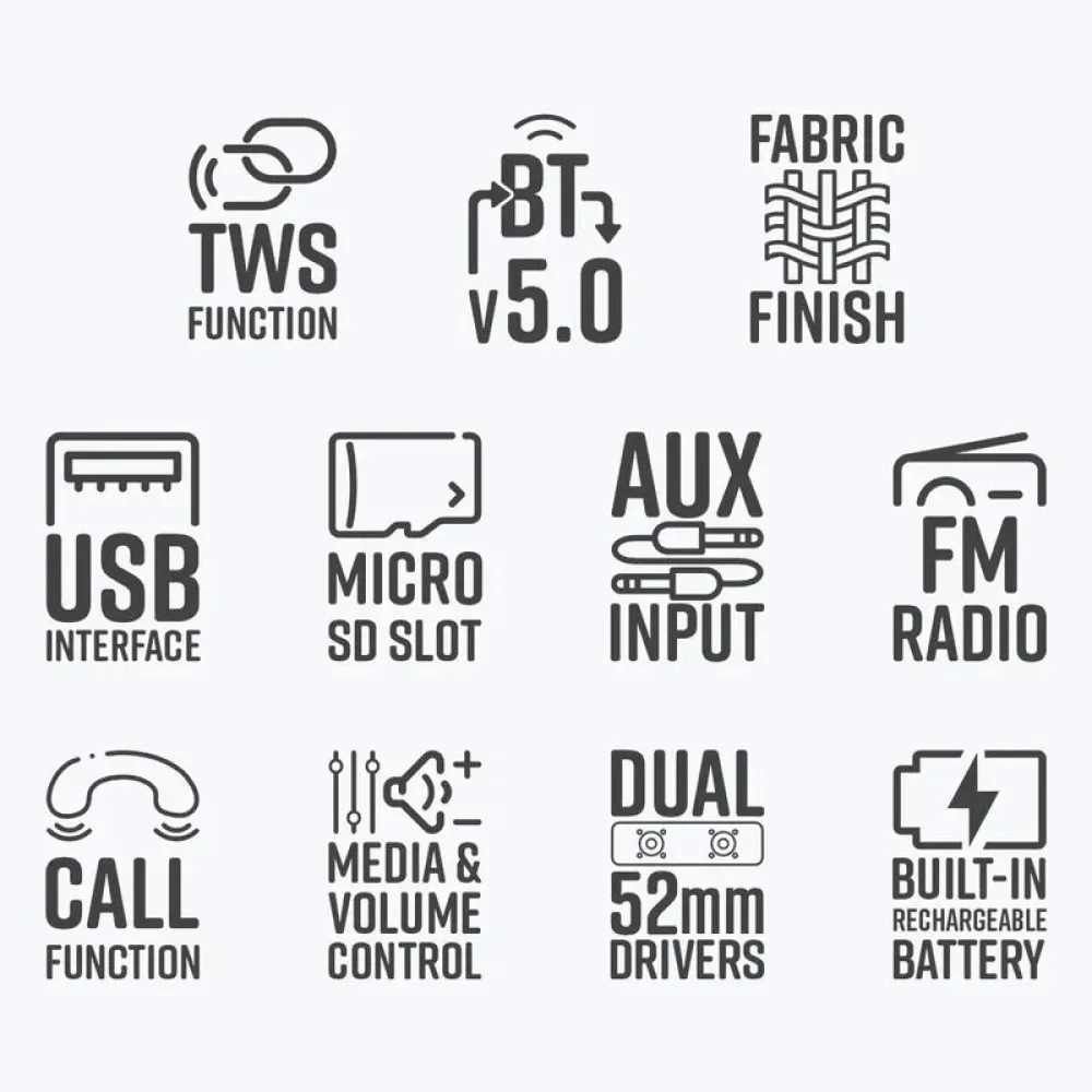 ✅ The Dawn 50 Bluetooth Speaker is a compact powerhouse featuring dual 52mm drivers with 16W RMS output for rich, immersive sound. Enjoy up to 8 hours of wireless playback with versatile connectivity options like Bluetooth, AUX, USB, and microSD. With FM radio, call support, and easy controls, it’s ideal for both home and outdoor use.
