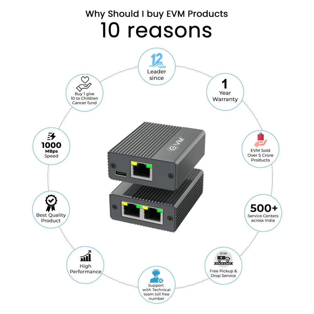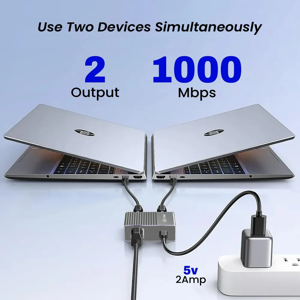 ✅ The EVM ES45-12 Gigabit LAN Splitter allows you to easily share a single LAN cable between two devices without loss of speed. It supports up to 1000 Mbps transmission and 100 meters distance, making it ideal for offices, homes, and gaming setups where multiple network connections are required.