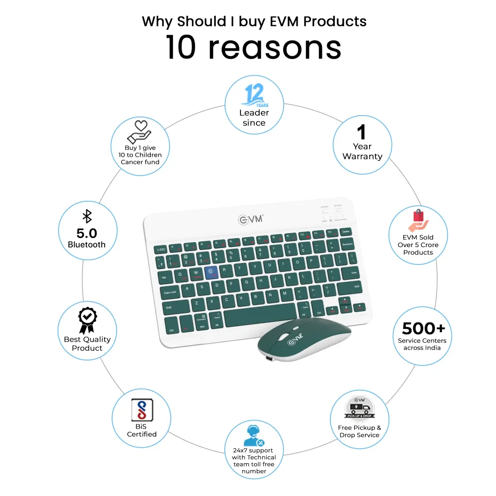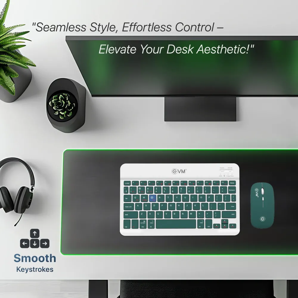 EVM Bluetooth Keyboard Mouse Combo Enclick WLKM & EWLM 360 is a stylish and efficient wireless combo designed for smooth performance and comfort. It features a sleek, low-profile Bluetooth keyboard with silent keys and an ergonomic wireless mouse for effortless navigation. The combo ensures reliable connectivity, long battery life, and compatibility with laptops, desktops, and smart devices. Available at Golchha Computer, this EVM Bluetooth Keyboard Mouse Combo offers productivity, convenience, and style — perfect for home and office users.