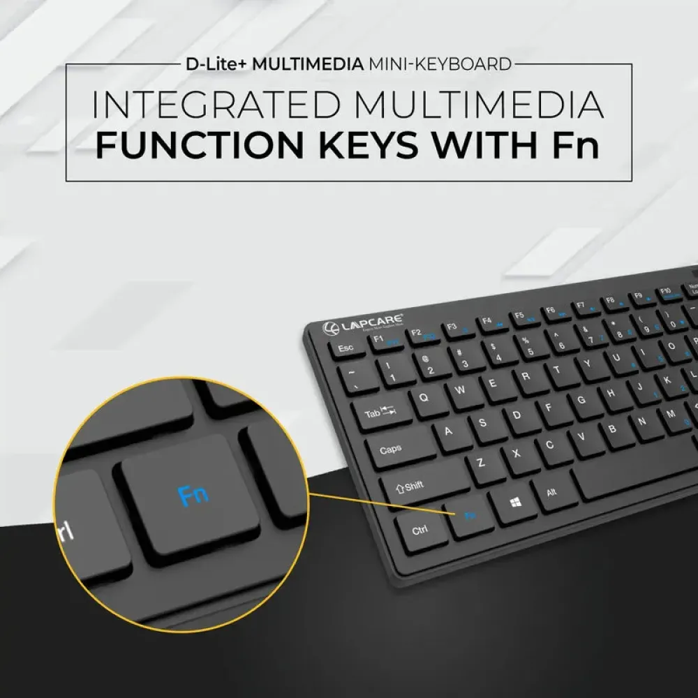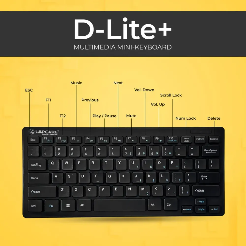 Lapcare Wireless Keyboard Mini D-Lite Plus Black is a compact and efficient wireless keyboard designed for comfort and portability. Its sleek design and soft keys ensure effortless typing, while the 2.4GHz wireless connectivity offers stable performance without cable clutter. Ideal for home, office, or travel use, this mini keyboard combines convenience and durability. Available at Golchha Computer, the Lapcare D-Lite Plus is perfect for users who value compact design with reliable wireless performance.