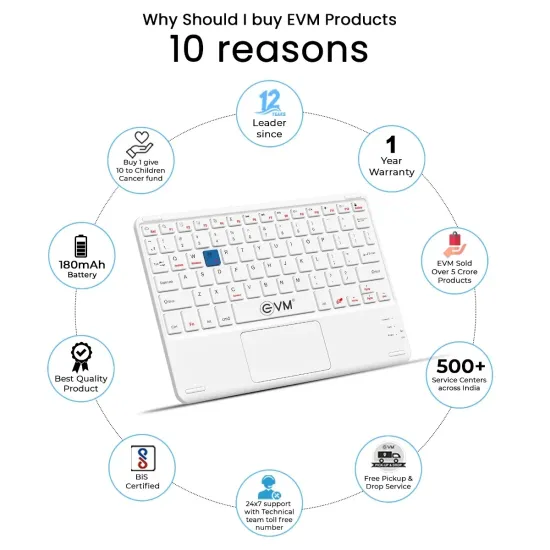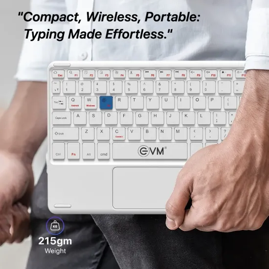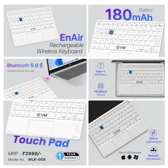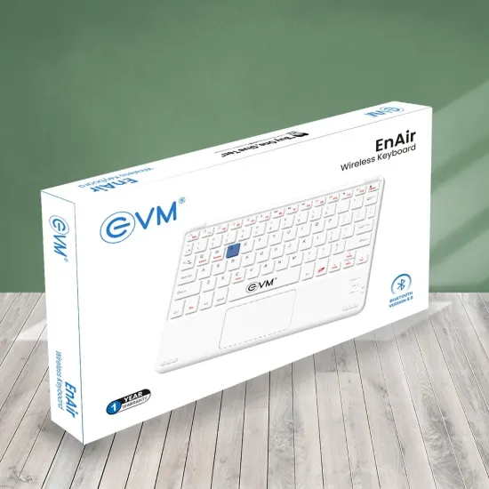 EVM Wireless Bluetooth Keyboard With Touchpad Enair WLK-009-W is a stylish white edition wireless keyboard featuring a responsive touchpad for effortless control. It connects via Bluetooth to laptops, tablets, smart TVs, and other devices, offering smooth typing and convenient navigation in one compact unit. With a slim, lightweight design and comfortable key layout, it’s ideal for both work and entertainment. Available at Golchha Computer, this keyboard combines elegance, performance, and portability for a modern wireless experience.