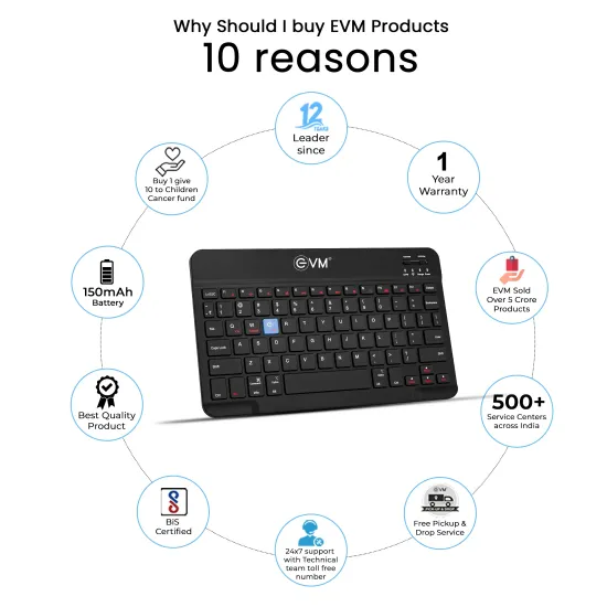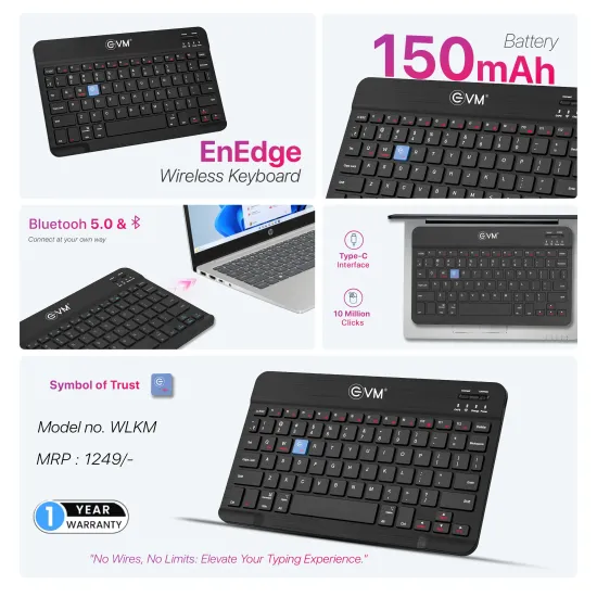 ✅ The EVM EnEdge WLKM Bluetooth Wireless Keyboard is a compact and rechargeable 9.7-inch keyboard designed for smooth connectivity and portability. With Bluetooth 5.0 technology, a 150mAh Type-C rechargeable battery, and a premium ABS body, it offers a perfect balance of elegance and performance.