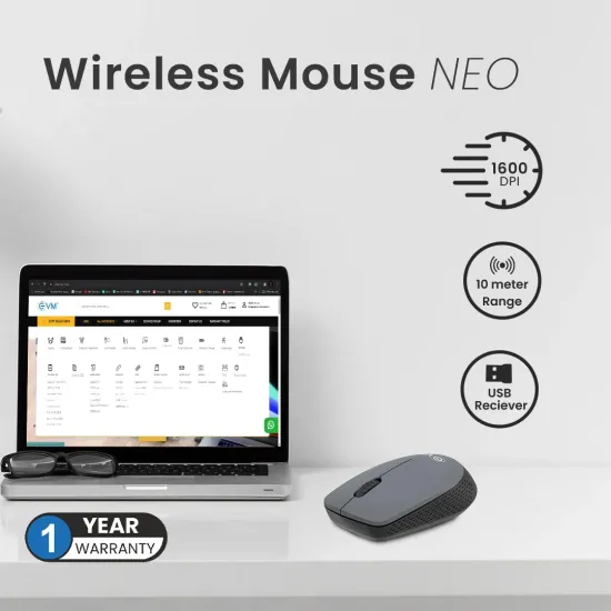 ✅ The EVM Neo 3W042 Wireless Mouse combines sleek looks with reliable 2.4GHz performance. Its compact ergonomic design and precise 1600 DPI sensor make it ideal for office, home, or travel use.