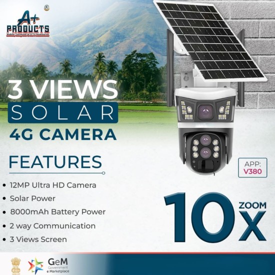 ✅ The 3 Views Solar 4G Camera is a powerful and energy-efficient security solution featuring 3MP HD clarity across PTZ, PT, and Fixed views. With 10X zoom capability and 2-way communication, it allows real-time monitoring and conversation from anywhere. The V380 app ensures seamless mobile access, while its solar-powered system and 8000mAh built-in battery provide continuous operation even in remote areas — perfect for outdoor surveillance where wiring is difficult.