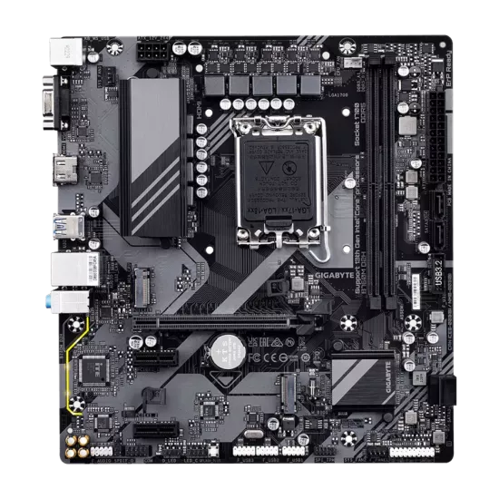 Gigabyte B760M D2H DDR5 Motherboard For Intel 12th | 13th Gen is a high-performance micro ATX motherboard built on the Intel B760 chipset, supporting 12th and 13th generation Intel processors. It features dual-channel DDR5 memory support for next-generation speed and efficiency, along with dual M.2 NVMe slots for ultra-fast storage. With robust power delivery, 2.5GbE LAN, and advanced cooling options, it ensures stable performance for gaming and professional use. Available at Golchha Computer, this motherboard delivers exceptional reliability, expandability, and performance for modern PC builds.