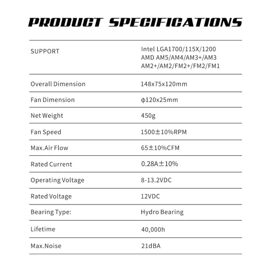 | Compatibility | Supports all mainstream AMD and Intel platforms including AM5 and LGA1700 sockets |