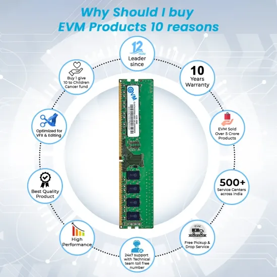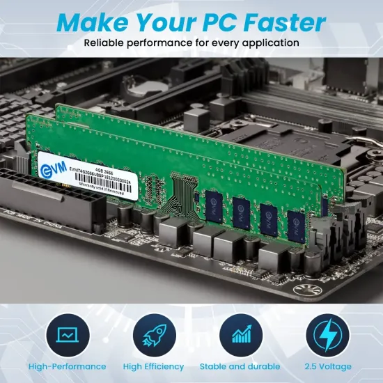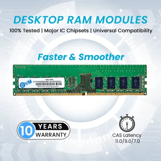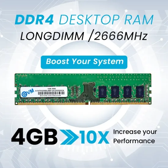 ✅ The EVM 4GB DDR4 2666MHz Desktop RAM (EVMT4G2666U88P) delivers efficient performance for daily computing and multitasking. Designed with high-quality chips, it ensures system reliability and stable operation for desktops needing a quick upgrade. Perfect for business, office, or home PC builds.