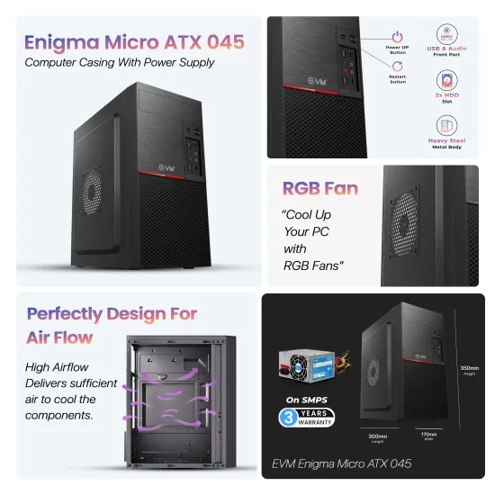 🖥️ EVM Enigma Micro ATX Cabinet – Compact Design with Strong Steel Body