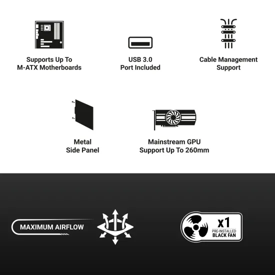 тЬЕ This Micro-ATX / Mini-ITX PC Cabinet offers a compact yet durable design, ideal for office and home PC builds. Made from sturdy ABS + SPCC steel, it supports essential components with easy installation. Equipped with a pre-installed 80mm rear fan and multiple I/O ports including USB 3.0 and Type-A, it delivers both functionality and reliability for daily computing needs.