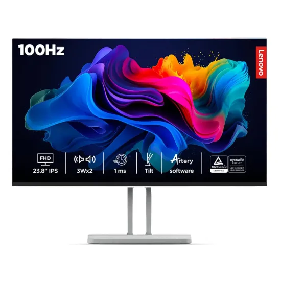 тЬЕ The Lenovo L24i-4A 23.8-inch IPS Monitor delivers sharp, vibrant Full HD visuals with a smooth 100Hz refresh rate and 1ms response time for lag-free performance. Featuring a 4-sided near-edgeless ultra-slim design, it offers a premium look ideal for home, office, or entertainment setups. The 99% sRGB color coverage ensures accurate color reproduction, while dual 3W built-in speakers provide immersive audio. With HDMI, VGA, and Audio Out ports, this monitor is a great value-for-money option for productivity and multimedia users alike.