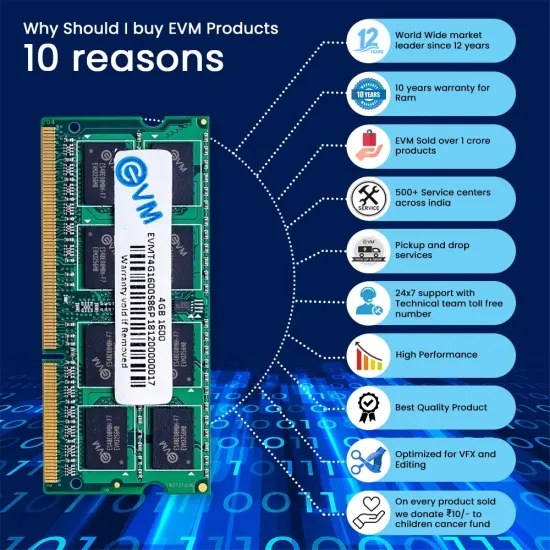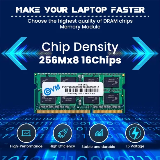 ✅ The EVM 4GB DDR3 1600MHz Low Voltage SO-DIMM Laptop RAM is an energy-efficient and high-quality memory upgrade, perfect for improving your laptop’s multitasking performance. Running at 1600MHz with a low operating voltage of 1.35V, it delivers smooth and reliable system operation while conserving power. Ideal for everyday computing, work-from-home, and office productivity, this RAM ensures consistent performance even under heavy workloads.