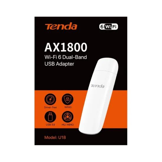 Tenda U18 AX1800 WiFi 6 Dual Band USB Adapter provides ultra-fast wireless performance with WiFi 6 technology, delivering speeds up to AX1800 for smooth streaming, gaming, and online work. Its dual-band support ensures stable connectivity with reduced interference, while the USB design allows easy plug-and-play installation. Available at Golchha Computer, it is an excellent upgrade for desktops and laptops requiring high-speed wireless performance.