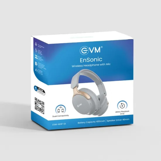 EVM Headphone Bluetooth Wireless with Mic EnSonic Grey offers wireless audio convenience with Bluetooth connectivity and integrated microphone, allowing clear communication and immersive sound. The cushioned grey ear pads and sleek design provide comfort for extended listening sessions. Available at Golchha Computer, this headphone blends style, performance, and ease of use for your daily media and communication needs.