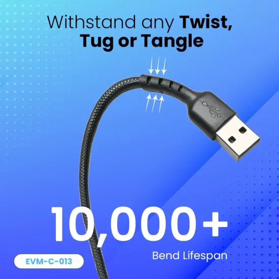 EVM USB To iPhone Lightning Charger & Sync Cable EVM-C-013-B is designed for fast charging and seamless data sync for Apple iPhone and iPad devices. Built with strong connectors and reliable material quality, it ensures safe and stable power delivery while preventing cable damage. Its user-friendly length provides convenience for everyday use at home, office, or travel. Available at Golchha Computer, this Lightning cable offers durable performance and wide compatibility with iOS devices for a smooth charging experience.