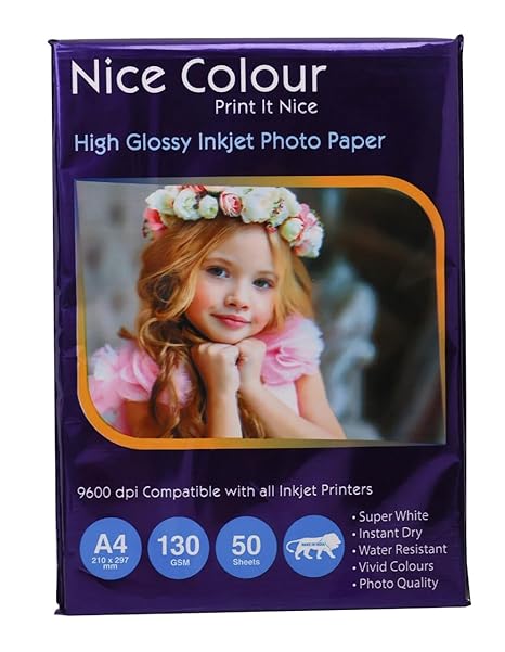 ✔ Nice Colour 130 GSM High Glossy A4 Photo Paper Home Printing, Personal Photo Albums और Student Projects के लिए Budget Friendly Best Choice है — Clear Gloss Finish के साथ!