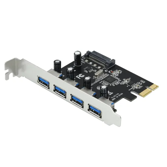 S-Tech PCI Express 4-Port USB 3.0 Expansion Card with SATA Power (VL805) is a versatile desktop add-on card that fits into a PCIe ×1 slot and adds four high-speed USB 3.0 Type-A ports for modern connectivity. It utilizes the VL805 chipset to support SuperSpeed data rates up to ~5 Gbps and includes a SATA power connector to ensure reliable power delivery to connected devices. Available at Golchha Computer, this expansion card is a practical solution for Indian users looking to upgrade USB connectivity affordably and efficiently.