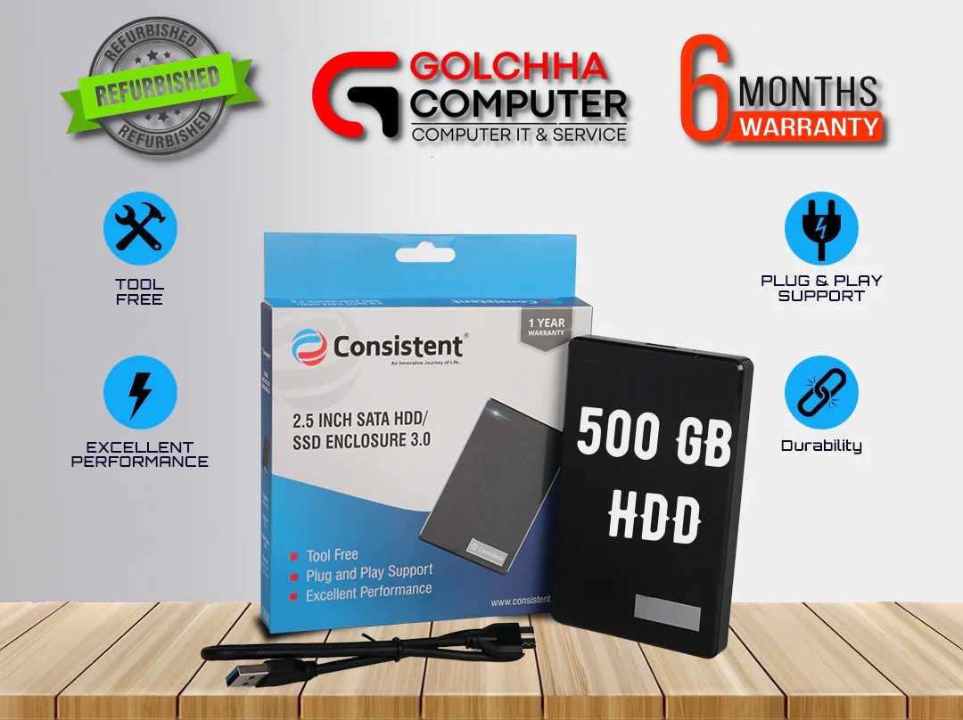 500 GB REFURBISHED EXTERNAL HARD DRIVE (6 Month WARRANTY) WD/SEAGATE/TOSHIBA provides reliable storage with 500GB capacity, ideal for backing up important files, media, and documents. Refurbished and tested, it comes with a 6-month warranty for added assurance. Available at Golchha Computer, this external hard drive ensures durable and efficient storage solutions for Indian customers.