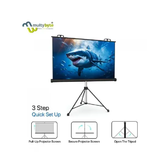 Multybyte Tripod Projection Screen 6×4 Ft provides a portable and easy-to-set-up screen ideal for presentations, home theaters, classrooms, or business meetings. Its 6-by-4-foot size ensures a sufficiently large viewing area for projected content, while the tripod design offers stability and quick setup. Available at Golchha Computer, this screen delivers a convenient and reliable projection solution for both personal and professional use.