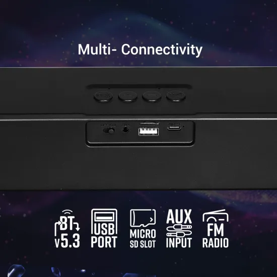 ✅ ZEB-PSPK 44 (Astra 40) Bluetooth Speaker एक पावरफुल और मल्टी-फंक्शनल स्पीकर है। इसका 20W आउटपुट, 52mm × 2 ड्राइवर्स और 100Hz – 20kHz फ्रीक्वेंसी क्लियर और डिटेल्ड साउंड प्रदान करता है। Bluetooth v5.3, USB, mSD, FM, AUX और TWS कनेक्टिविटी के साथ, यह RGB LED, Dual Passive Radiators और कॉल फ़ंक्शन जैसी विशेषताओं के साथ आता है। USB/mSD सपोर्ट 32GB तक है और बैटरी 8 घंटे तक प्लेबैक देती है।