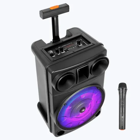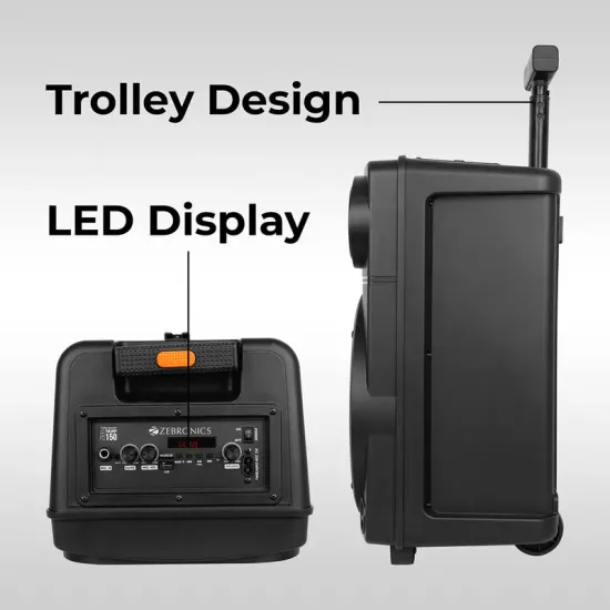 Media/Volume Control, Mic Volume & Echo Control और RGB Light Button के साथ कंट्रोल आसान हो जाता है। LED Display और RGB Lights इसे और भी आकर्षक बनाते हैं। Built-in Rechargeable Battery, Wireless Mic और Retractable Handle + Wheels इसे पूरी तरह पोर्टेबल और ट्रैवल-फ्रेंडली बनाते हैं।