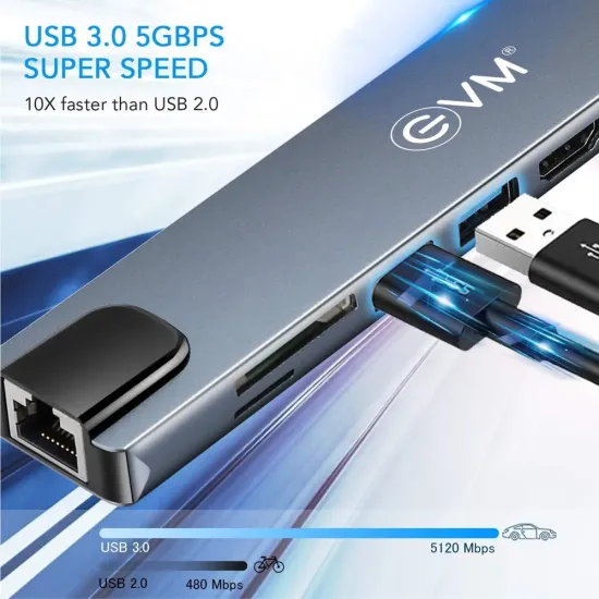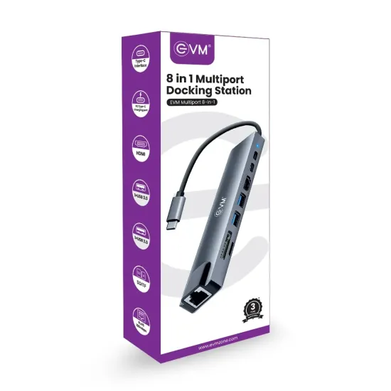 EVM TYPE C HUB Dock 8 in 1 (HDMI | USB | LAN | TF | SD CARD | TYPE-C)
