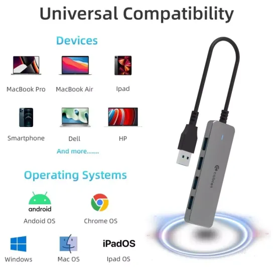 ✅ Cablet HB403-C3-GY-BP Type-C Hub एक तेज़ और विश्वसनीय USB 3.0 एक्सपेंशन हब है, जो लैपटॉप और डेस्कटॉप में 4 हाई-स्पीड USB पोर्ट्स जोड़ता है। इसका कॉम्पैक्ट और प्लग-एंड-प्ले डिज़ाइन इसे रोज़मर्रा के उपयोग के लिए परफेक्ट बनाता है।
