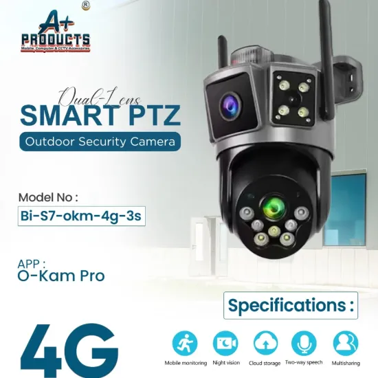 A+Products 2MP + 2MP 4G Dual Lens PTZ Night Color Camera With 2 Way Talk is a high-performance security camera designed for clear, wide-angle monitoring with dual 2MP lenses and advanced PTZ control. Its 4G connectivity enables remote access without Wi-Fi, while night color vision ensures bright and detailed footage even in low light. The built-in two-way talk feature allows real-time communication, making it ideal for home, shop, farm, and outdoor surveillance. Available at Golchha Computer, this camera offers a reliable and smart security solution across India.