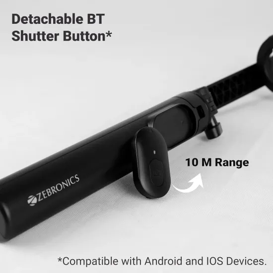 Zebronics Selfie Stick with Tripod Stand and Detachable Bluetooth Shutter Button
