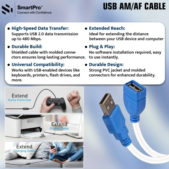 тЬЕ The Smart Pro USB Extension Cable 1.5m ensures reliable connectivity for all USB-enabled devices with up to 480 Mbps transfer speed. Its durable, anti-bending design makes it perfect for both home and office setups.