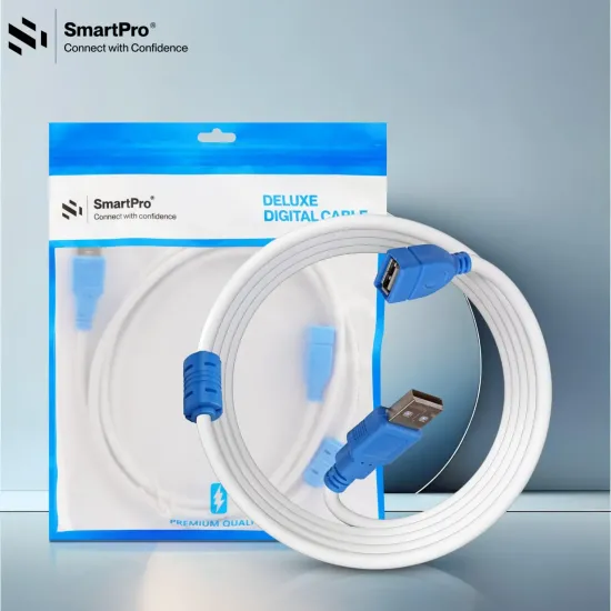 Smart Pro USB Extension Cable 1.5m provides a 1.5-meter extension for USB devices, perfect for connecting keyboards, mice, printers, and external drives. Engineered for stable data transfer and reliable performance, this cable ensures smooth operation for both home and office setups. Available at Golchha Computer, it offers a premium USB extension solution for Indian customers.