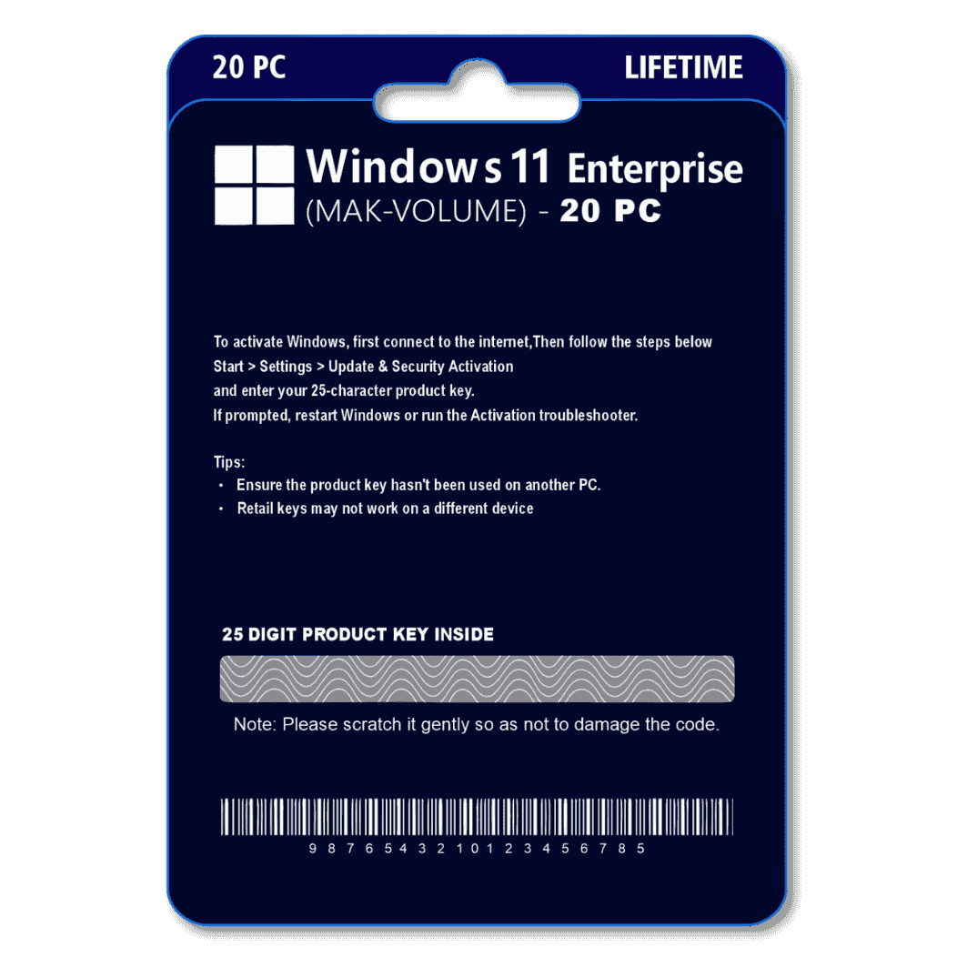 | Model | Windows 11 Enterprise 20PC Original License Key |