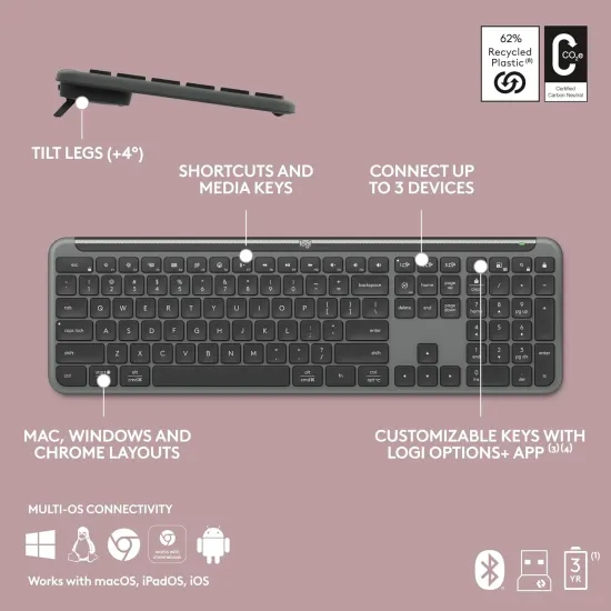 | Multi-Device Support | Easy-Switch support for up to 3 devices |