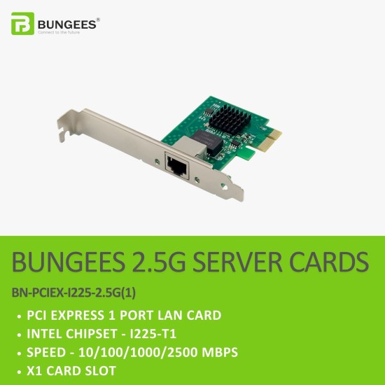 тЬЕ The Bungees BN-PCIEX-I225-2.5G(1) is a high-performance 2.5 Gigabit network card designed for modern servers and workstations. Featuring the Intel I225-T1 chipset and PCIe x1 interface, it delivers faster-than-Gigabit connectivity for NAS systems, virtualization, content creation, and high-speed enterprise networks.