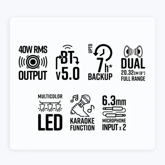 | Ideal Usage | Party, Karaoke, Events & Outdoor Use |