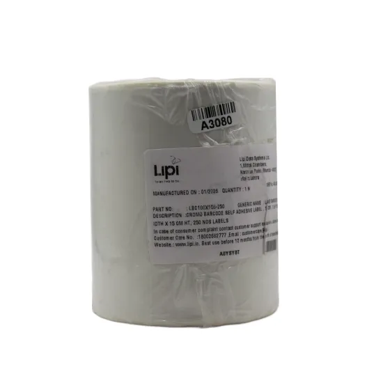 Lipi Thermal Barcode Sticker Roll 100mm x 150mm (250 Labels) is a high-quality thermal label roll designed for clear and accurate barcode printing. With a standard 100mm x 150mm label size and 250 labels per roll, it is ideal for shipping, logistics, inventory management, and retail applications. Available at Golchha Computer, this thermal barcode sticker roll ensures smooth printer compatibility, strong adhesion, and reliable performance for Indian customers.