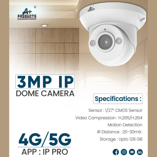 тЬЕ This 3MP 4G / 5G IP Dome Camera is a reliable surveillance solution for locations without fixed internet connectivity. With clear imaging, mobile network support, motion detection, night vision up to 30 meters, and remote monitoring via the IP PRO app, it is ideal for homes, shops, offices, and outdoor security use.