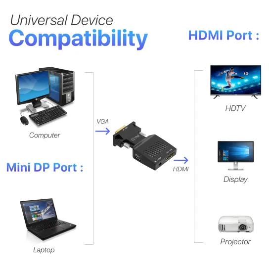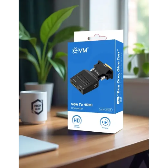 тЬЕ The EVM VGA to HDMI Converter allows seamless conversion from VGA to HDMI with Full HD output support. Its plug-and-play functionality, stable performance, and built-in audio support make it ideal for presentations, home entertainment, and office display setups.