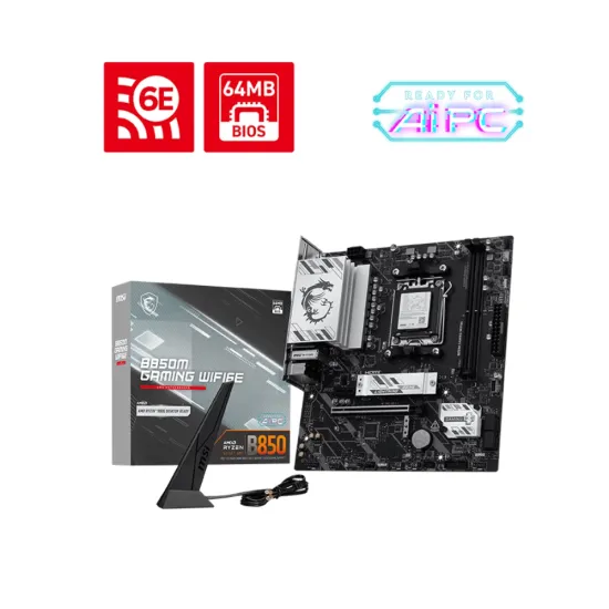 тЬЕ The B850M GAMING WIFI6E Motherboard is built for next-generation AMD Ryzen desktop processors with high-speed DDR5 memory support up to 8200+ MT/s (OC). Featuring a robust 7+2+1 phase power design, WiFi 6E connectivity, and an 8-pin CPU power connector, this motherboard delivers stable performance for gaming PCs, content creation systems, and high-performance desktop builds.