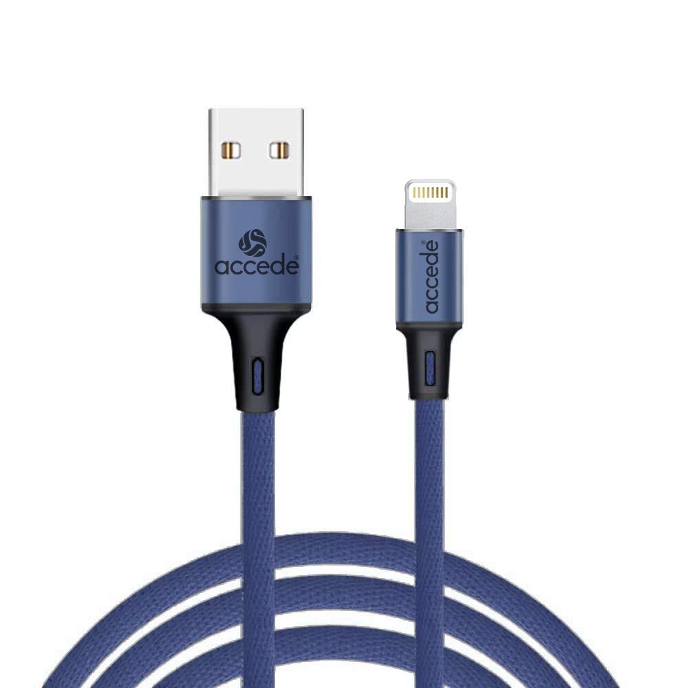 Accede A155 JACK-XL Tangle-Free Unbreakable 2.4A Fast Charging & Sync Round Nylon Braided Lightning USB Cable delivers fast charging and reliable data transfer with support for 2.4A output and 480Mbps data sync. Designed for compatibility with iPhone, iPad Air, and iPad Mini, its durable round nylon braided construction ensures flexibility, strength, and a tangle-free experience. This 2-meter cable in stylish blue is ideal for everyday charging and syncing needs. Available at Golchha Computer, it offers dependable performance for Indian customers.