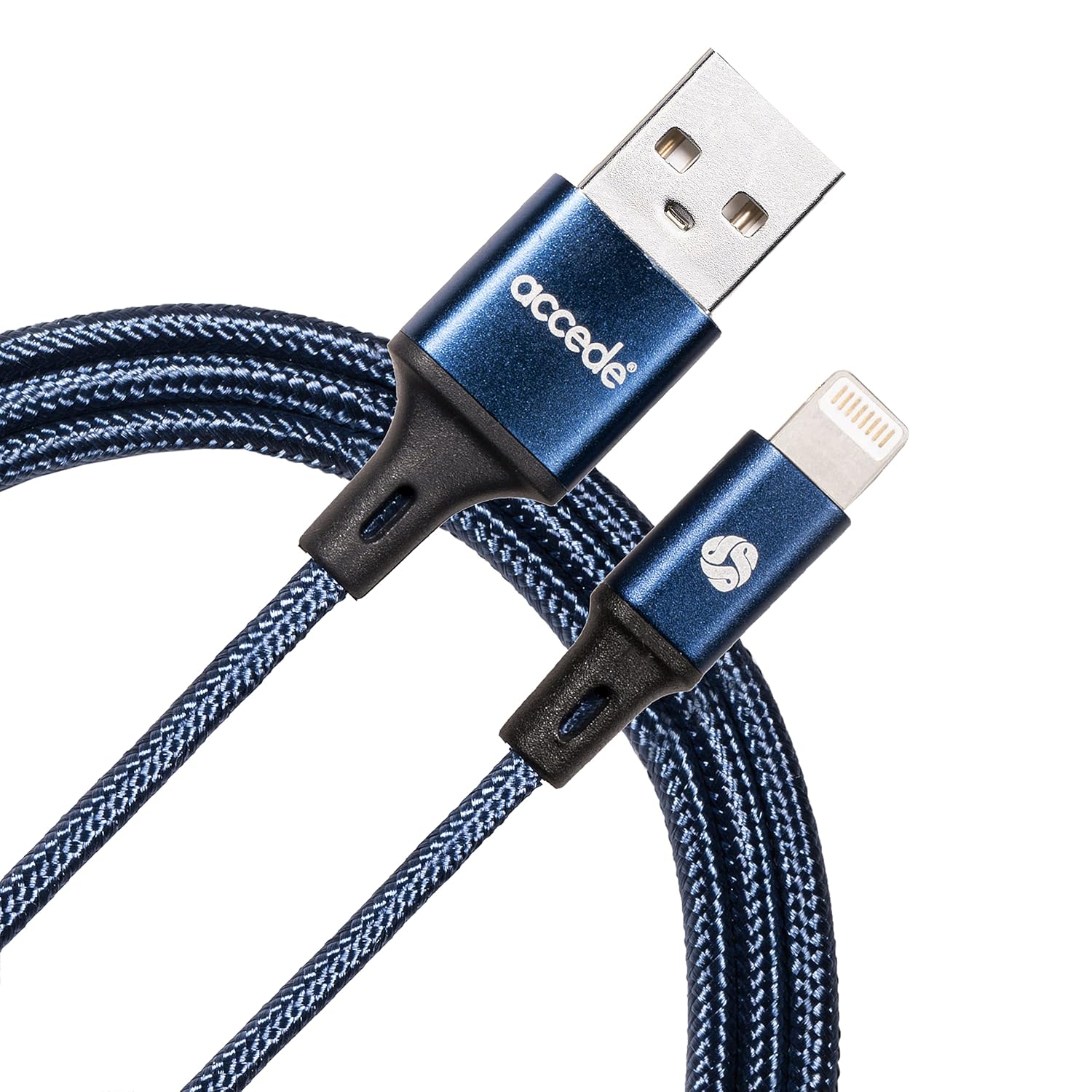 Accede A155-L JACK-XL Tangle-Free Unbreakable 2.4A Fast Charging & Sync Round Nylon Braided Lightning USB Cable, 480Mbps Data Sync Cable Compatible with iPhone, iPad Air &iPad Mini (2M, Blue)