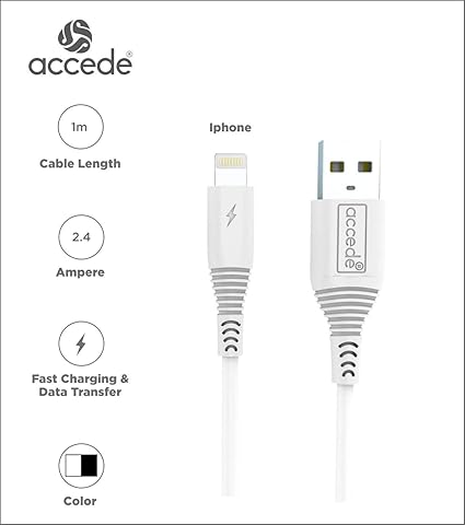 тЬЕ The Accede A100i JET-X Lightning USB Cable delivers rapid charging and reliable data transfer performance for Apple devices. With support for up to 2.4A fast charging and 480 Mbps high-speed data sync, this 1-meter cable ensures quick power delivery and efficient file transfers. Its sturdy build quality and sleek white design make it ideal for everyday use at home, office, or while traveling.