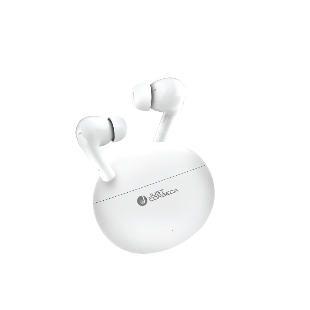JUST CORSECA SOUL SYNC PRO JST400 Wireless Earbuds | HD Sound, 10mm Drivers, Bluetooth 5.3, 40-Hour Playtime, Type-C Charging, Power-Efficient Chipset, Comfortable & Stylish Design (Black,White)
