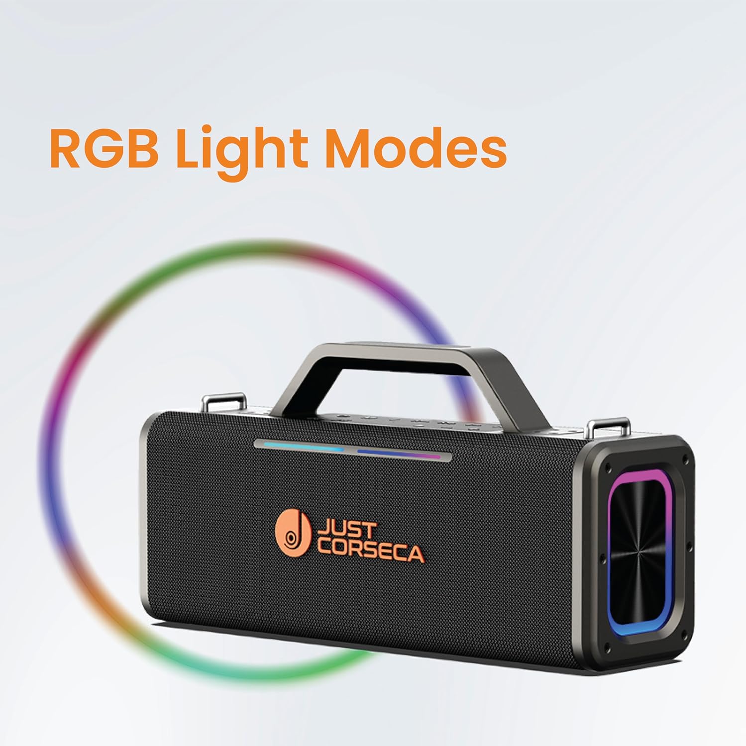 JUST CORSECA SONIC STREAM JST632 Wireless Bluetooth Speaker with 360W | 8 Hours Playtime| RGB Light | Powerfull Sound (Black,Orange)
